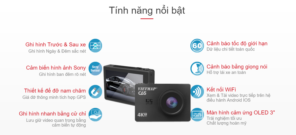 Camera hành trình VIETMAP C65 với tính năng độc đáo cảnh báo thông tin giao thông bằng giọng nói trên toàn quốc: